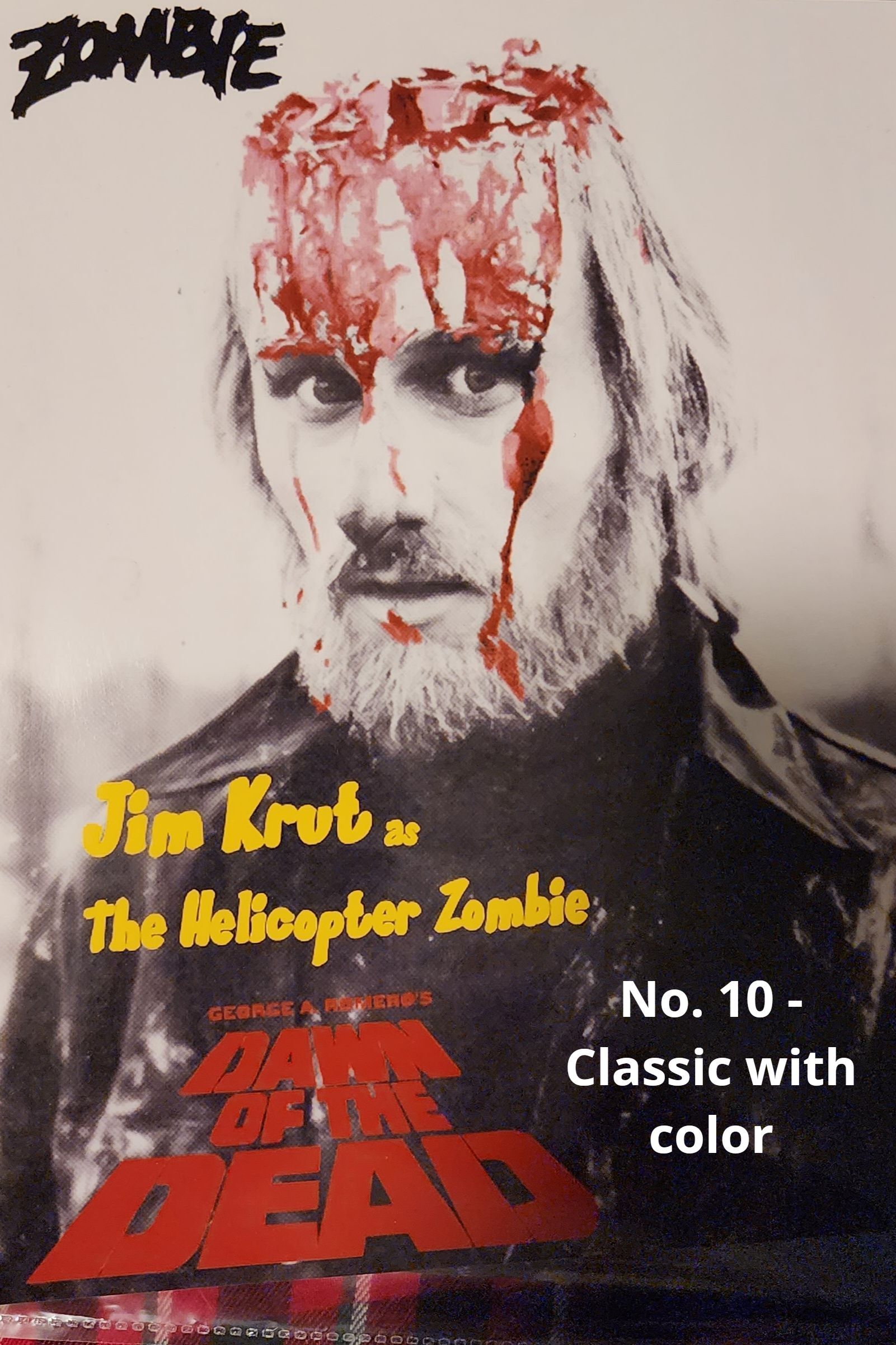 Each photo can be personalized for you. All come with Jim Krut's autograph and "Helicopter Zombie" signed on them. Photos may also be dedicated (see sample at right)