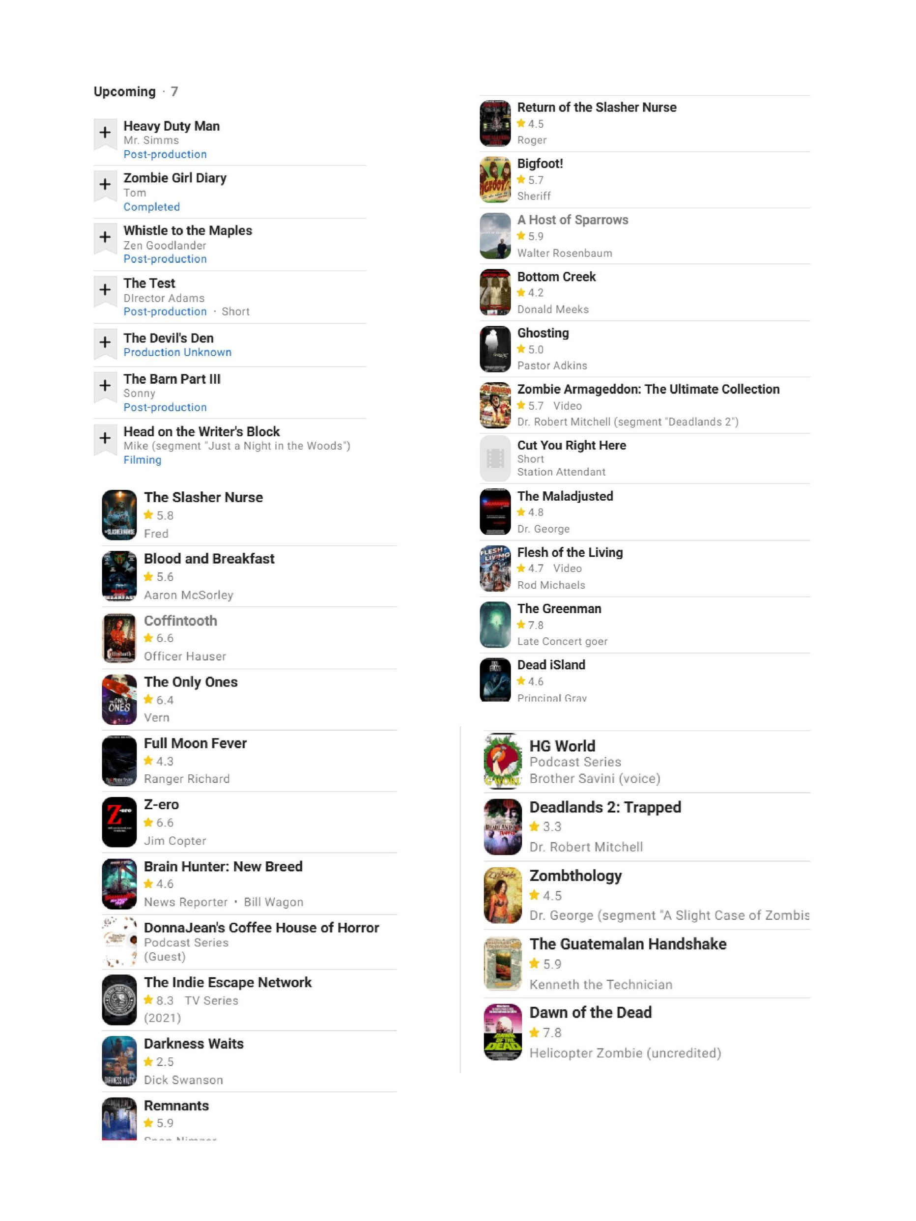 For a current and complete listing of Jim Krut's filmography, you may follow this link: Internet Movie Database-Jim Krut